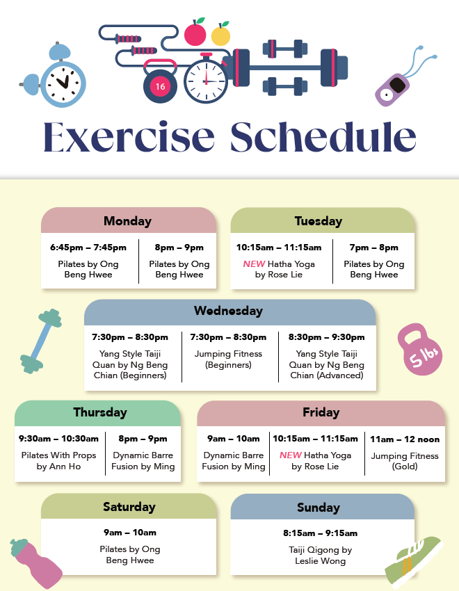 Get ready to work up a sweat with experienced group fitness trainer Ming! Fusing elements of Barre, Pilates, Aerobics, Cardio and HIIT, this total body workout incorporating elastic bands, dumbbells and other props is guaranteed to raise your energy levels and keep you fighting fit.