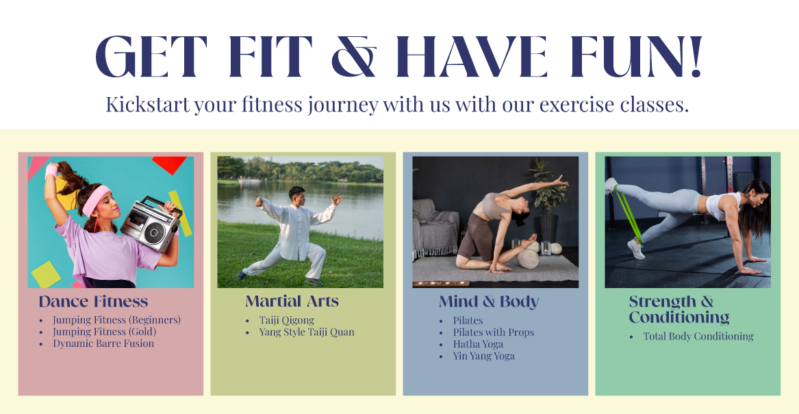 Kickstart your fitness journey with our exercise classes! Whether you want to stretch, flow, or groove, we’ve got something for everyone. These are the available classes that we offer: