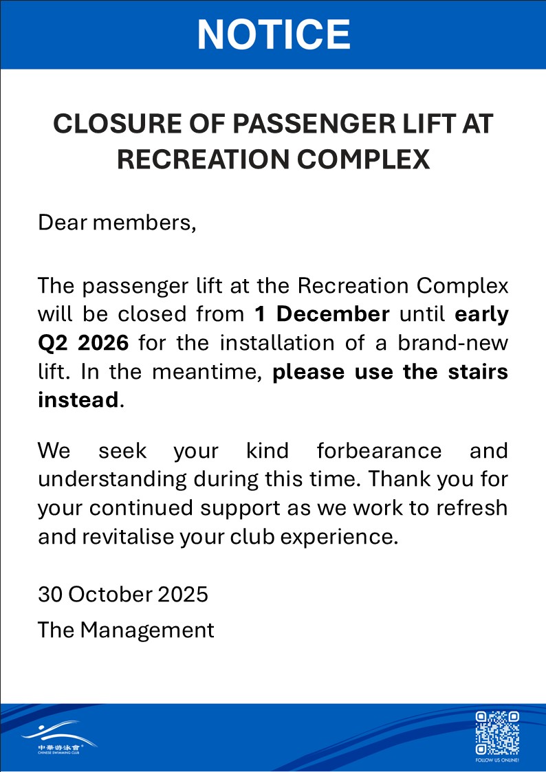 CLOSURE OF PASSENGER LIFT AT RECREATION COMPLEX